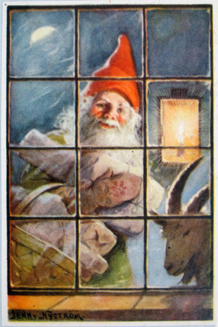 Julkort med tomte (Jenny Nyström)