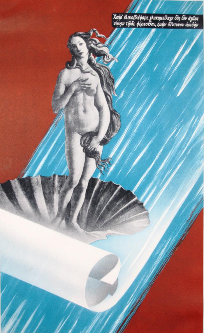 Reklamtryck med kvinna i snäckskal