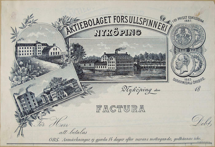 Fakturahuvud. Fors Ullspinneri, Aktiebolaget , Nyköping