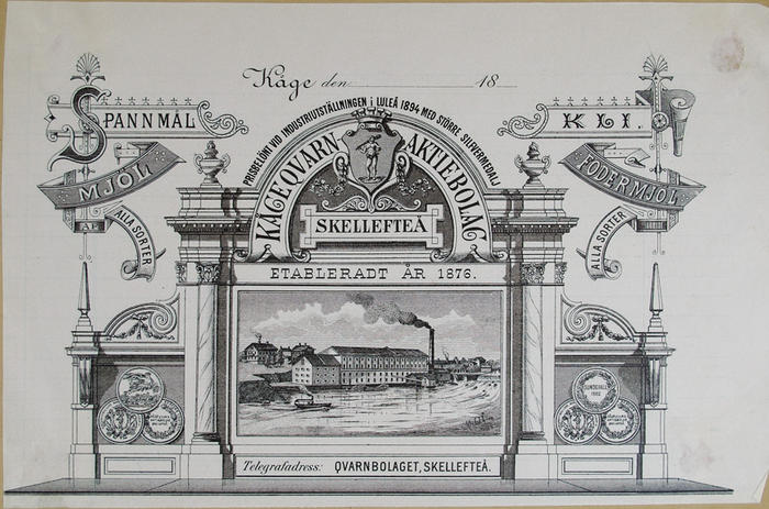 Fakturahuvud. Kågeqvarn Aktiebolag Skellefteå Etablerat 1876
