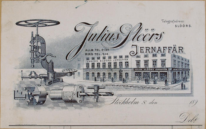 Fakturahuvud. Julius Slöörs Järnaffär, Stockholm
