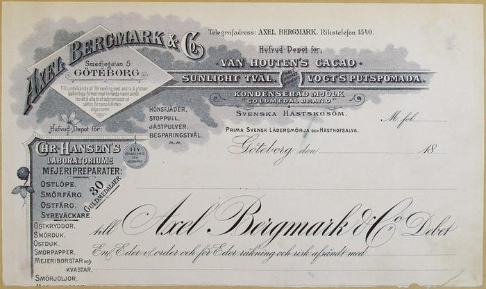 Fakturahuvud. Axel Bergmark & Co, Göteborg