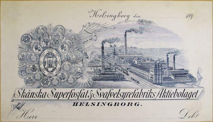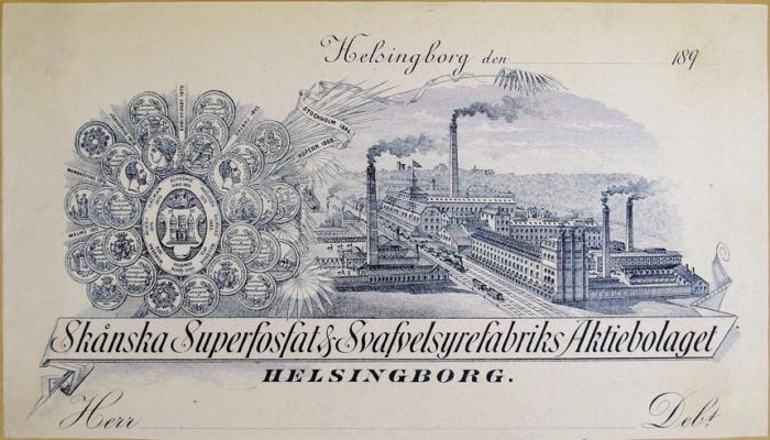 Fakturahuvud. Skånska Superfosfat & Svavelsyrefabriks Aktiebolaget Helsingborg