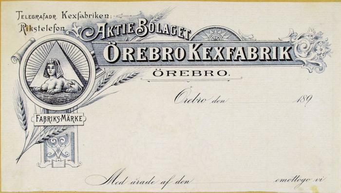 Fakturahuvud. Aktiebolaget Örebro Kexfabrik