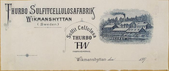 Fakturahuvud. Thurbo Sulfitcellulosafabrik Wikmanshyttan (Sweden)