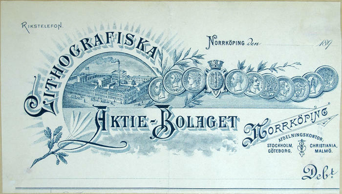 Fakturahuvud. Lithografiska Aktie-Bolaget Norrköping