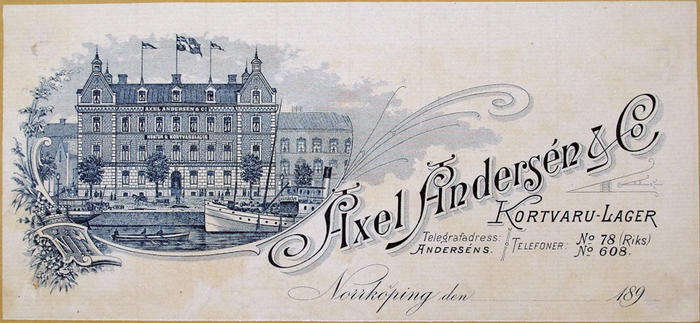 Fakturahuvud. Axel Andersén & Co, Norrköping