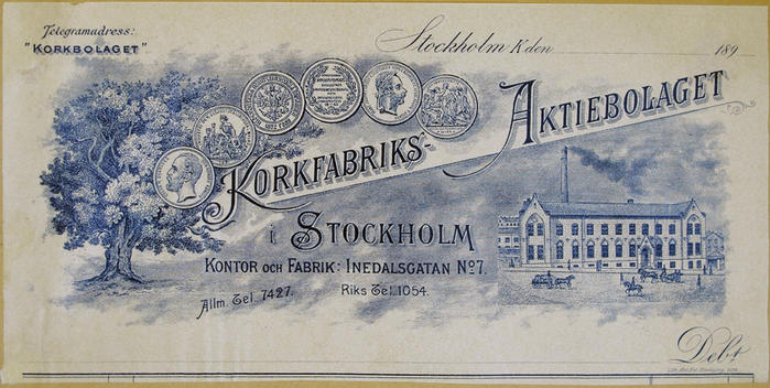 Fakturahuvud. Korkfabriksaktiebolaget, Stockholm