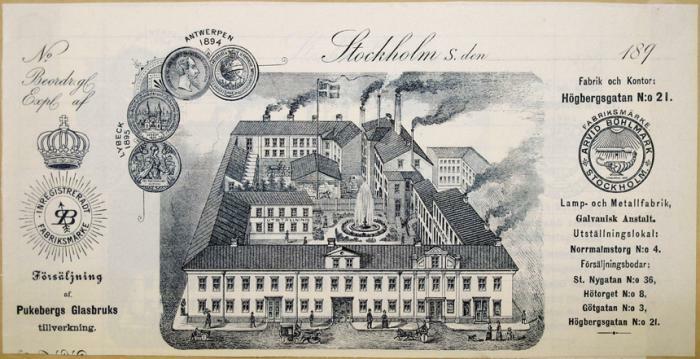 Fakturahuvud. Arvid Böhlmark Stockholm