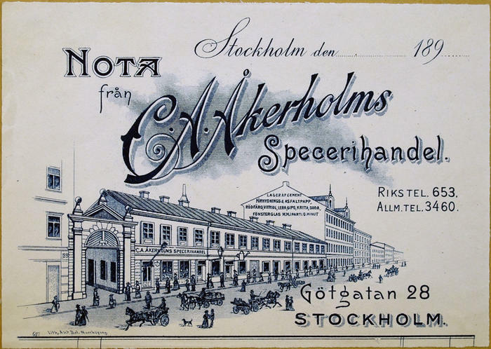 Fakturahuvud. C. A. Åkerholms Specerihandel, Stockholm