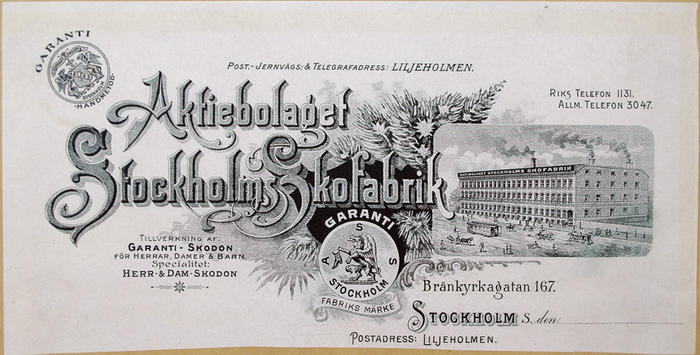 Brevhuvud. Aktiebolaget Stockholms skofabrik