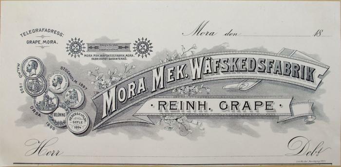 Brevhuvud. Mora Mek. Wäfskedsfabrik. Reinh. Grape, Mora