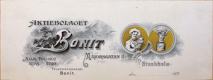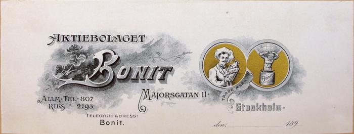 Brevhuvud. Aktiebolaget Bonit, Stockholm