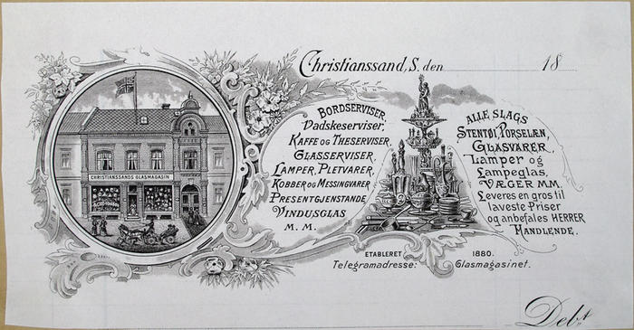 Brevhuvud. Christianssands Glasmagasin, Kristiansand