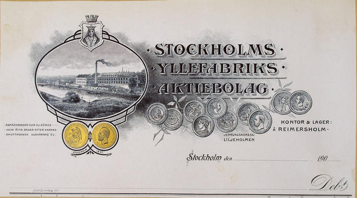 Fakturahuvud. Stockholms Yllefabriksaktiebolag