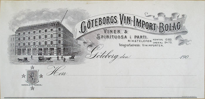 Brevhuvud. Göteborgs Vin-Import-Bolag. Göteborg