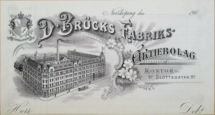 Fakturahuvud. D. Brücks Fabriksaktiebolag, Norrköping