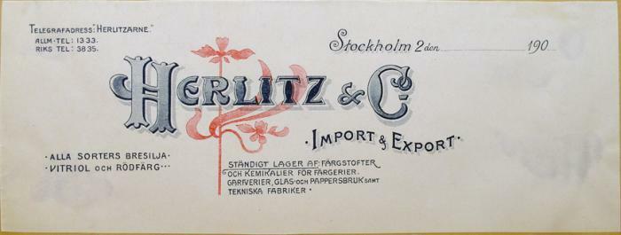 Brevhuvud. Herlitz & Co Import & Export, Stockholm