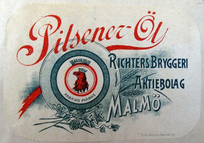 Etikett. Pilsener-Öl. Richters Bryggeri Aktiebolag Malmö