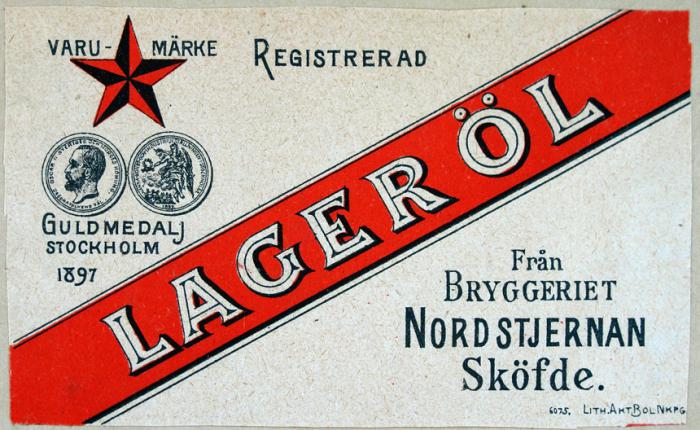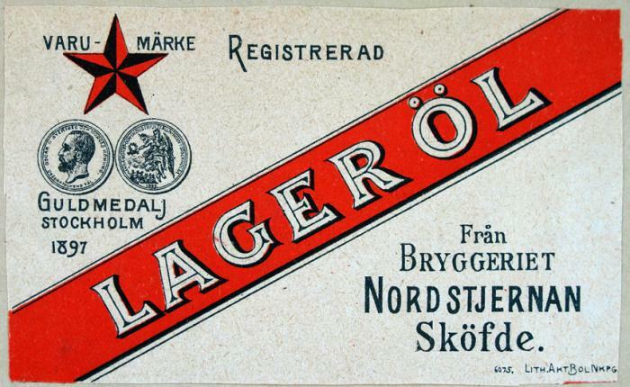 Etikett. Lageröl. Från Bryggeriet Nordstjernan Sköfde, Skövde