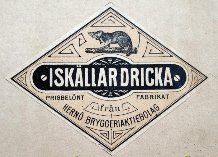 Etikett. Iskällardricka. Hernö Bryggeriaktiebolag. Härnösand