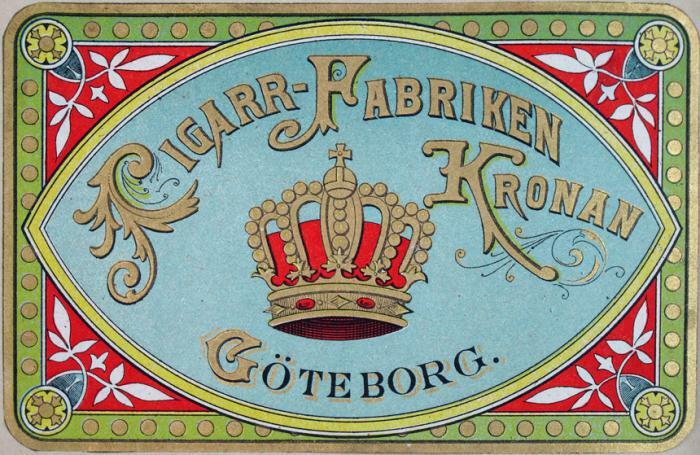 Etikett. Cigarr-Fabriken Kronan Göteborg