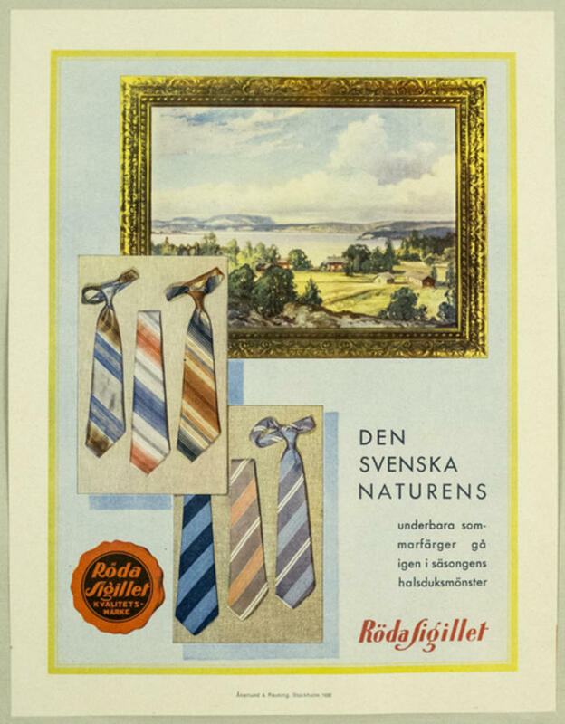 Reklamtryck. Röda Sigillet. Den svenska naturens underbara färger gå igen i säsongens halsduksmönster