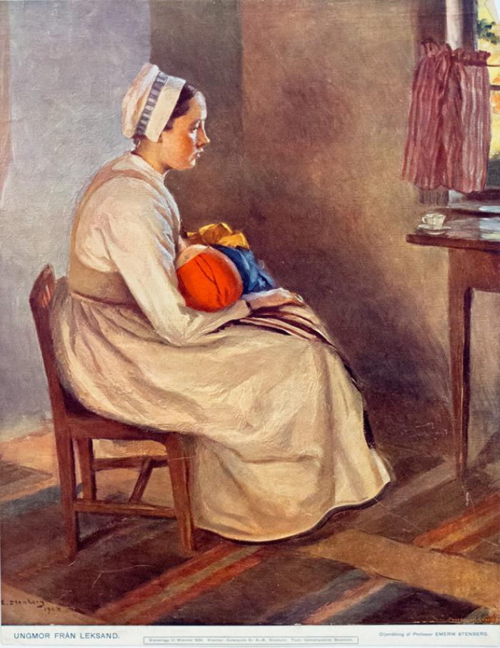Reproduktion. Ungmor från Leksand. Oljemålning av Professor Emerik Stenberg