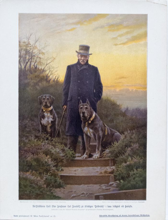 Reproduktion. Skriftställaren Carit Etar (professor Carl Brosböll) på ättehögen. Allers familjejournal