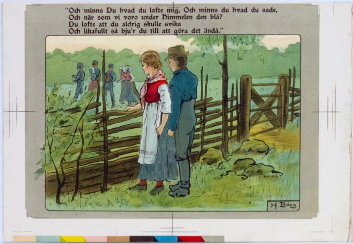 Illustration. Ingår i serie om 8 blad med sagomotiv