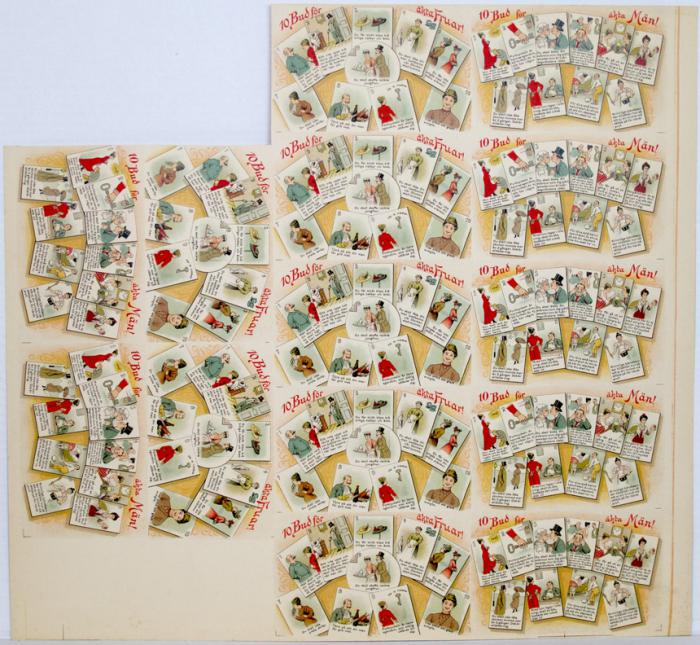 Vykort. Obeskurna. 10 bud för äkta fruar. 10 bud för äkta män.