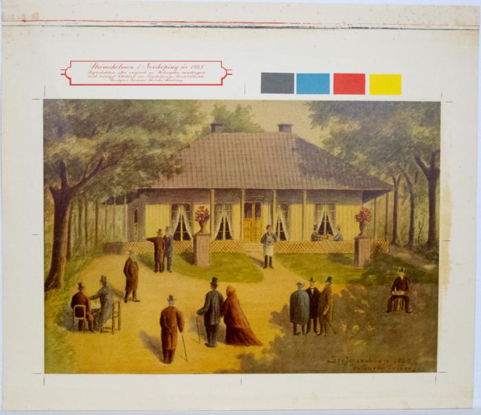 Reproduktion. Strömsholmen i Norrköping år 1863. Wilhelm Wiberg