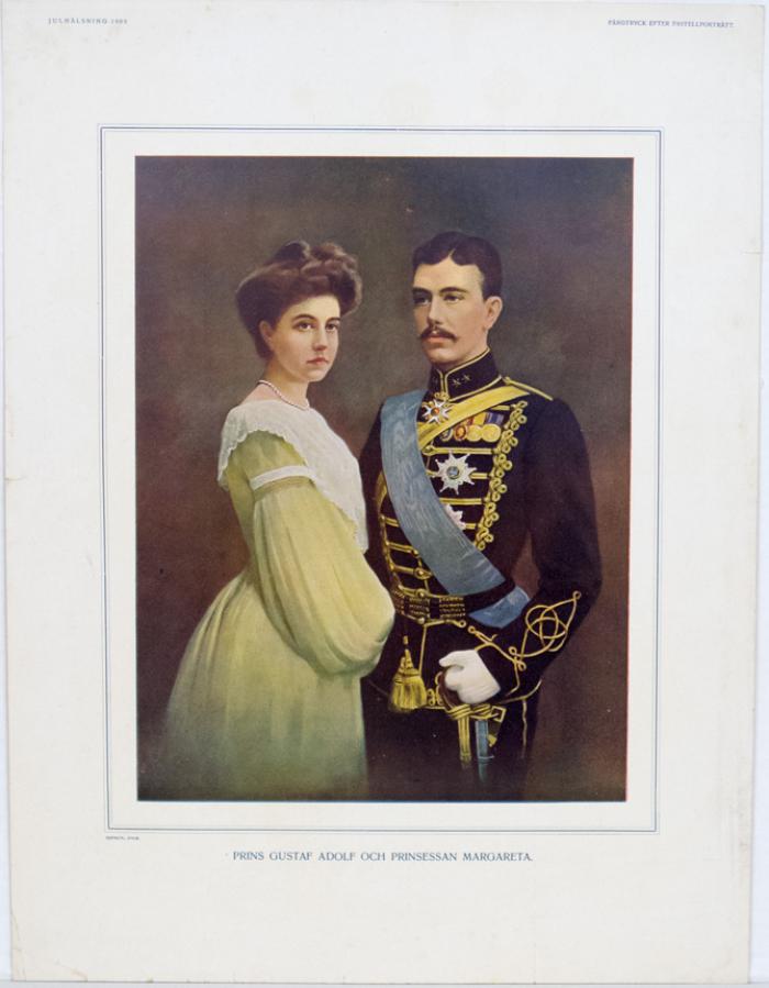 Reproduktion av porträtt. Prins Gustaf Adolf och Prinsessan Margareta. Ur Julhälsning 1905