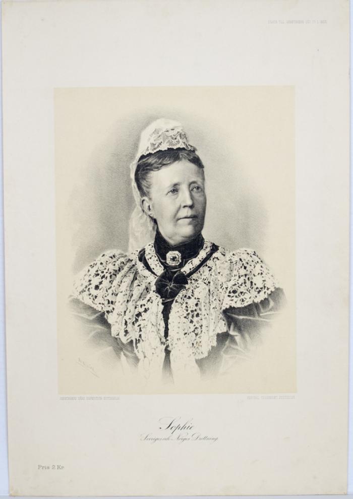 Plansch. Drottning Sophie, Sveriges och Norges Drottning. R. Widing. Bilaga till Arbetarens Vän N:o 1 1897.