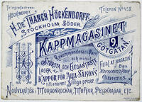 Reklamtryck. Kappmagasinet Mme de Thatch Höckendorff, Götgatan 9, Stockholm