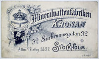 Reklamtryck. Mineralvattenfabriken Kronan, Surbrunnsgatan 32, Stockholm