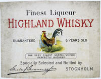 Etikett. Finest Liqueur Highland Whisky. Gustaf Gummesson, Stockholm - Prislista. Dalheim & Engström, Viner & Spirituosa. Stockholm
