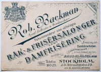 Reklamtryck. Rob. Backman Rak- & Frisérsalonger, Stockholm
