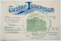 Reklamtryck. Gustaf Josephson, Speceri- konserv. delikatessaffär. Stockholm