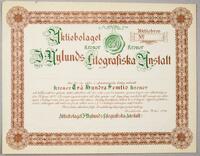 Aktiebrev.Talong till Aktiebrevet No. Aktiebolaget J. Nylunds Litografiska, Stockholm -