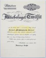 Aktiebrev. Aktiebolaget Twilfit -
