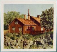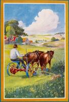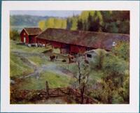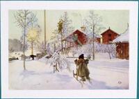 Illustration. Bonde som kör med hästar. - Vykort fiskesamhälle
