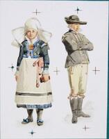 Plansch. Folkdräkt Färs Härad Skåne. Av Otto Wallgren 1839 -