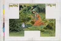 Illustration av H.Borg. Ingår i serie om 8 blad med sagomotiv. Provtryck. -