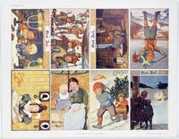 Vykort. Åtta obeskurna kort på ark med Bellmansmotiv. Julhälsning 1906. (Gunnar Widholm) -