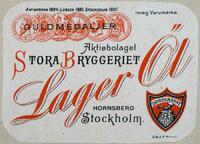 Etikett. Lager Öl. Stora Bryggeriet, Hornsberg Stockholm