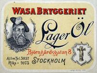 Etikett. Wasa Bryggeriet. Lager Öl. Stockholm