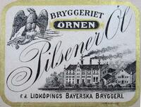 Etikett. Bryggeriet Örnen Pilsener Öl. Lidköpings Bayerska Bryggeri. Lidköping