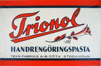 Reklamtryck. Trionos Handrengöringspasta. Tekniska Fabriken Göta, Stockholm -