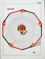 Plansch. Platta för kaffekanna I. Vas II. Signatur R. F. -